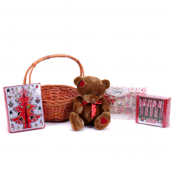 Veselý dárek v červeném proutěném košíku s cukrovinkami a chutným proseccem Reya. Součástí košíku je také látková panenka v červenobílém oblečení. ... Více