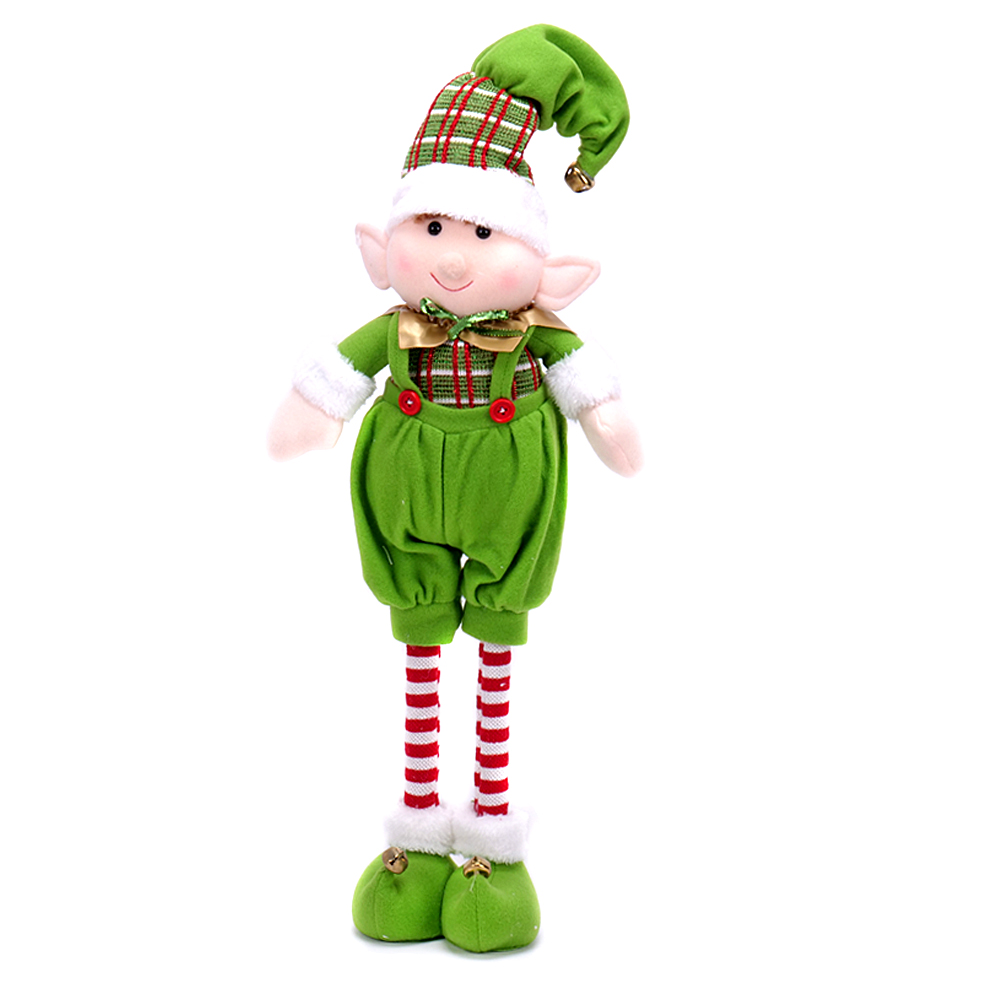 Vianočný plyšový trpaslík s výškovo nastaviteľnými nohami v zeleno - červenom prevedení.