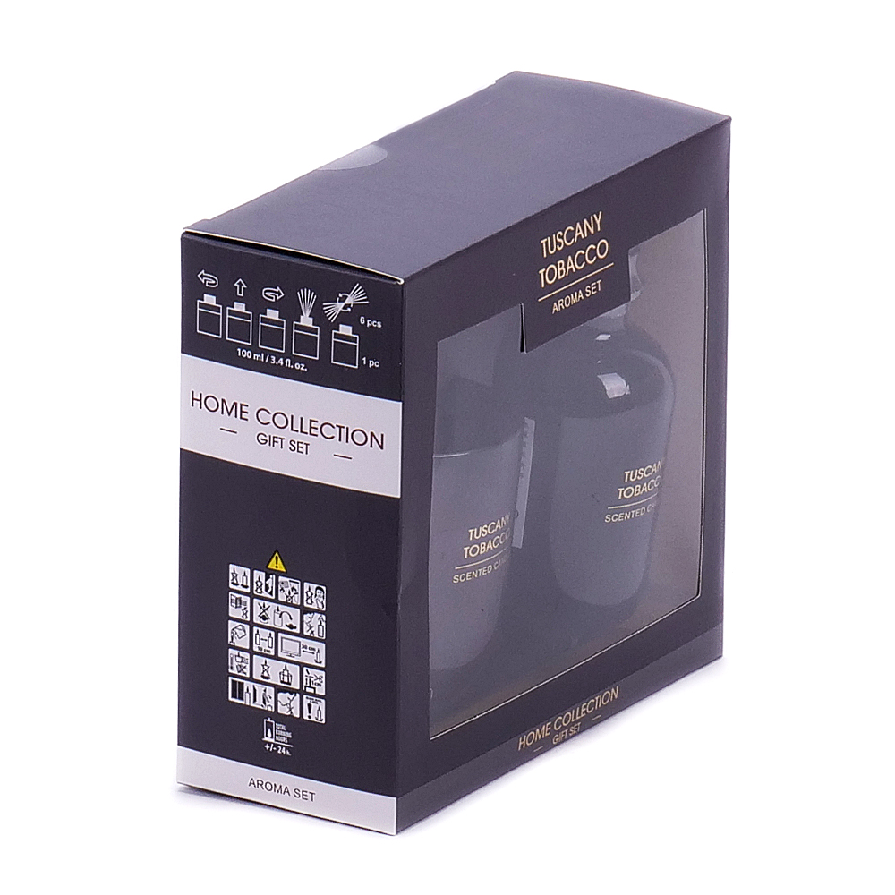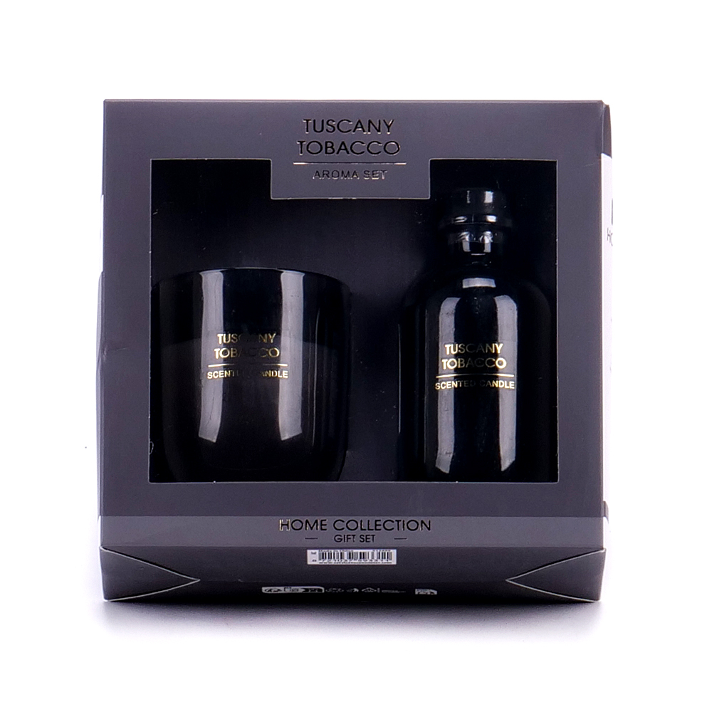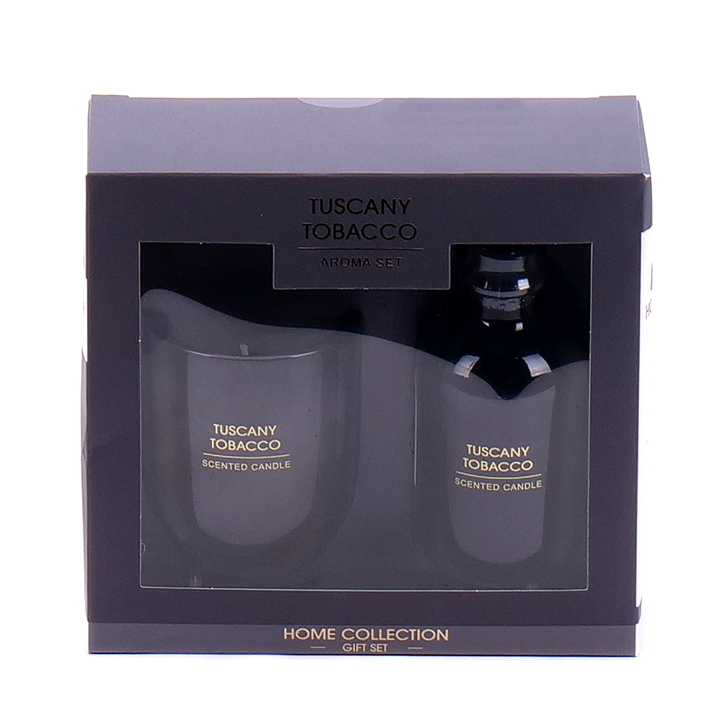Darčekový set so sviečkou a difúzorom s vôňou tabaku. Táto vôňa je komplexná a intenzívna, so silným základom tabaku, ktorý je doplnený o sladké a drevité tóny