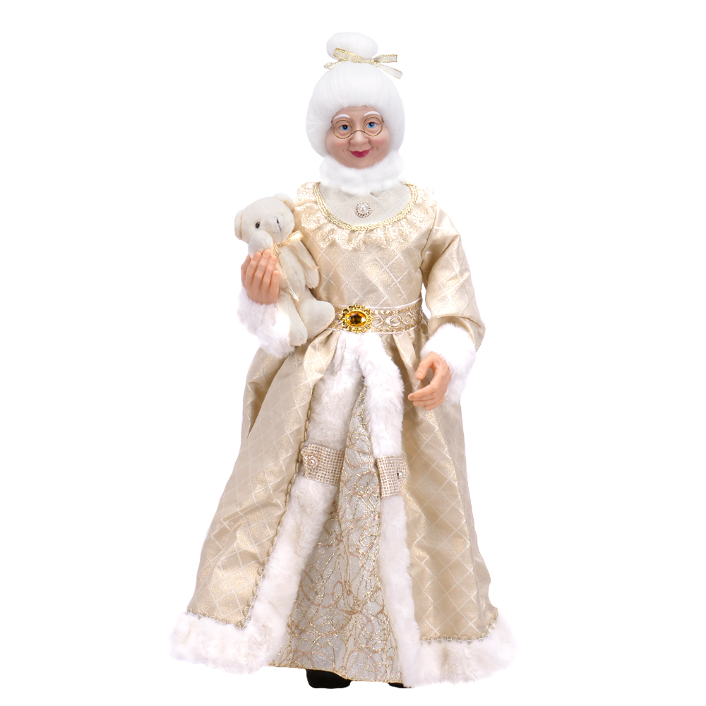 Postava vianočnej babičky v krémovo - zlatom oblečení s výškou 80 cm.