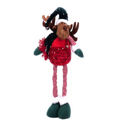 Plyšový sob s výškovo nastaviteľnými nohami vo vianočných farbách.